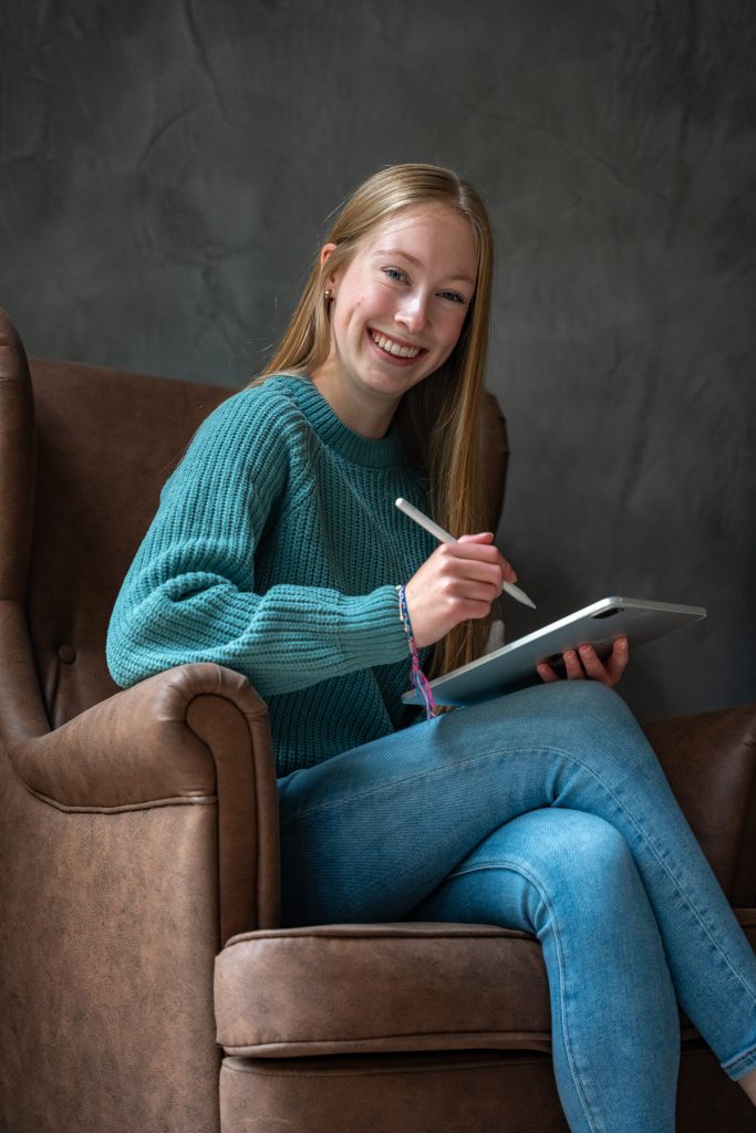 Voor vormgeving gebruik ik mijn Ipad Pro en Apple pencil 2e generatie. Ik werk hierop veel met de app Procreate. Verder doe ik alles op mijn laptop. Hiervoor gebruik ik de Adobe Programma’s.