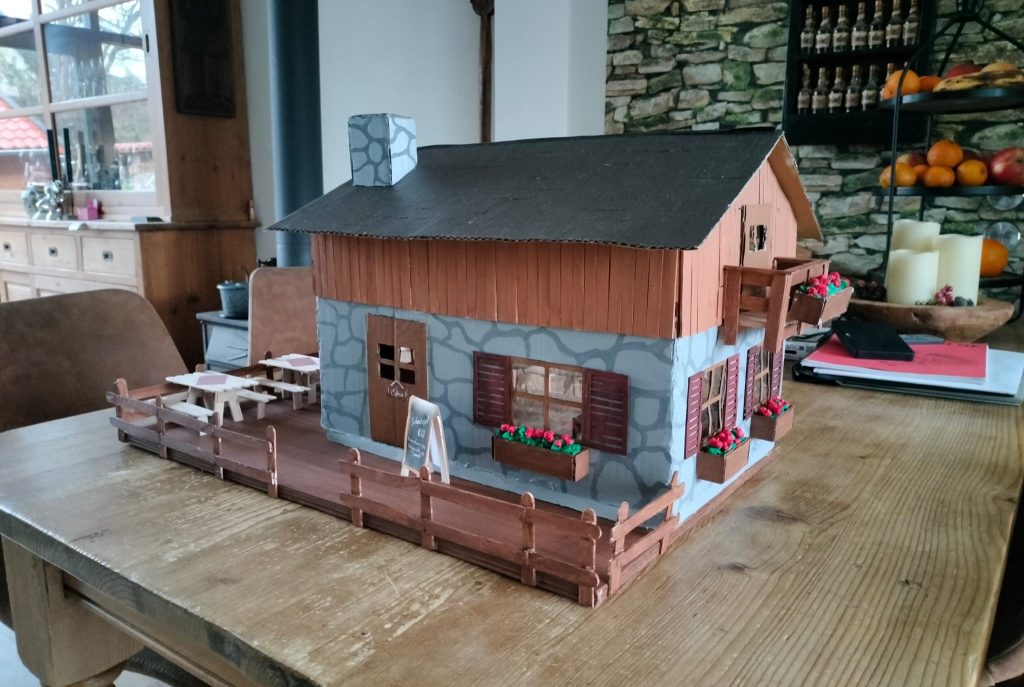 Dit jaar maakte ik een Oostenrijks huis als surprise. Ik begon met het opzoeken van referentieplaatjes. Ik gebruikte de Playmobil Berghut als inspiratie en toen kon ik echt aan de slag!